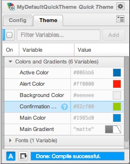 Quick Themes works just like a regular custom theme. However, Quick Themes expose a handful of variables that smartly control the entire look of the theme using some additional SCSS behind the scenes.