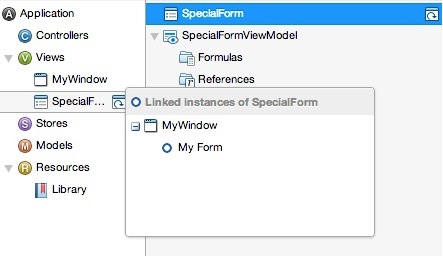 Architect 3.1 also brings a new technique to visualize connections to the inspector's "Linked Instances". Linked Instances are now shown by drawing arrows between the main and detail inspector. This occurs when the linked instance is hovered over with the mouse.