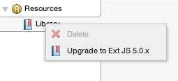 To upgrade your application, simply right click on the Library node of an Ext JS 4.2 project and click Upgrade to Ext JS 5.0.x.