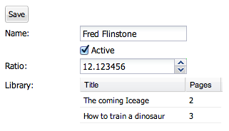 Object graphs used in the examples. This person editor example uses the Grid for the person's library of books. See more on the Grid.